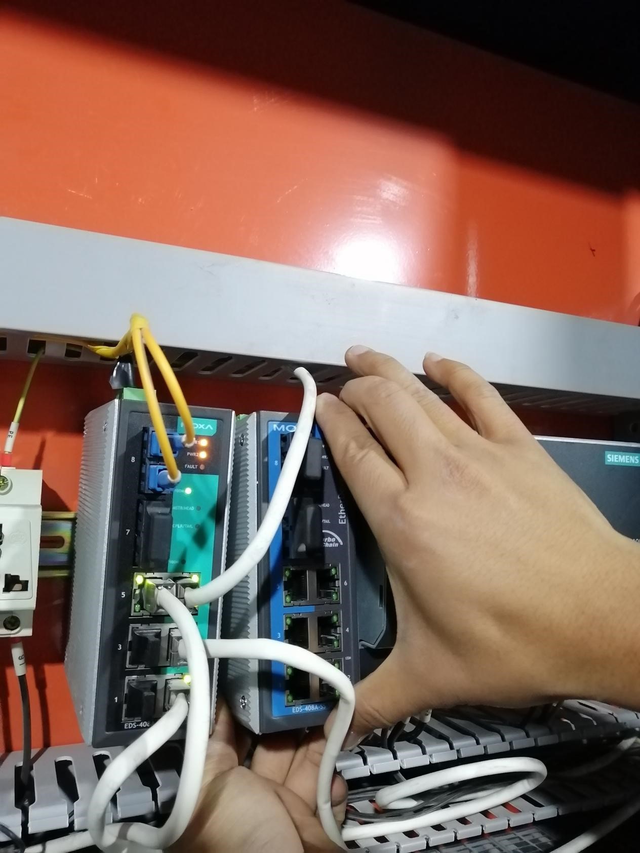 11月14日8:08分西昌藍(lán)鼎二期脫硫工業(yè)電腦突然失去控制,頓時無法實現(xiàn)遙測、遙信、遙調(diào)、遙控等操作,時刻面臨重主要設(shè)備跳停引起出口二氧化硫超標(biāo)排放的環(huán)保風(fēng)險,情況十分危急。電儀組全體火速趕到中控室,檢查原因,查明工業(yè)電腦通信異常,立刻檢查上一級交換機運行狀態(tài),檢查無異常后,根據(jù)經(jīng)驗立刻判斷是PLC柜光纖以太網(wǎng)交換機出現(xiàn)故障, 8:33分經(jīng)過團隊協(xié)作,完成備件更換,中控室工業(yè)電腦通信恢復(fù)正常,成功避免了環(huán)保事故的發(fā)生。