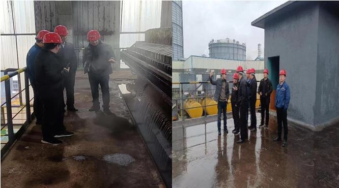 相關(guān)方領(lǐng)導(dǎo)新區(qū)水處理反應(yīng)釜、壓濾機(jī)、吹氨塔現(xiàn)場(chǎng)參觀交流