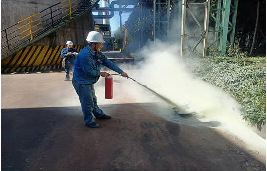 本次演練模擬場景為球團綠化帶起火, 1400演練正式開始。西昌藍鼎巡檢員在現(xiàn)場檢查時發(fā)現(xiàn)球團綠化帶出現(xiàn)火情,迅速上報當班班長。班長以最快速度將情況上報生產(chǎn)副部長,生產(chǎn)副部長按照規(guī)定的匯報機制,迅速將信息傳達至球團主任。得到搶險指示后,西昌藍鼎生產(chǎn)部立即行動,有條不紊地組織人員疏散,對現(xiàn)場進行了嚴格的警戒隔離,確保周邊人員的安全。同時,各部門迅速組織力量,憑借嫻熟的技能和豐富的經(jīng)驗,將火情進行了有效撲滅。